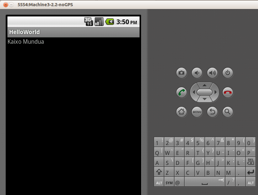 Hortxe dugu gure lehen Android aplikazioa! Kaixo Mundua!