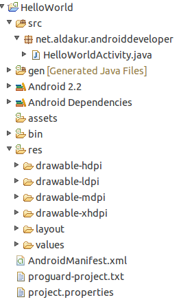 Aurreko postan aipatu bezala, Android proiektu berri bat sortzen dugunean, proiektu honen egitura automatikoki sortzen da. Garrantzitsua da estruktura honen funtzionamendua ezagutzea. Gure app-a garatzerako orduan behar ditugun errekurtsoak bertan txertatuko ditugulako.