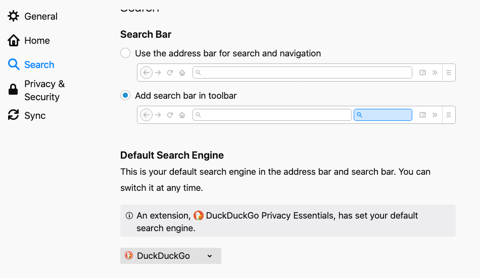 duckduckgo aukera lehenetsi bezala ezarri