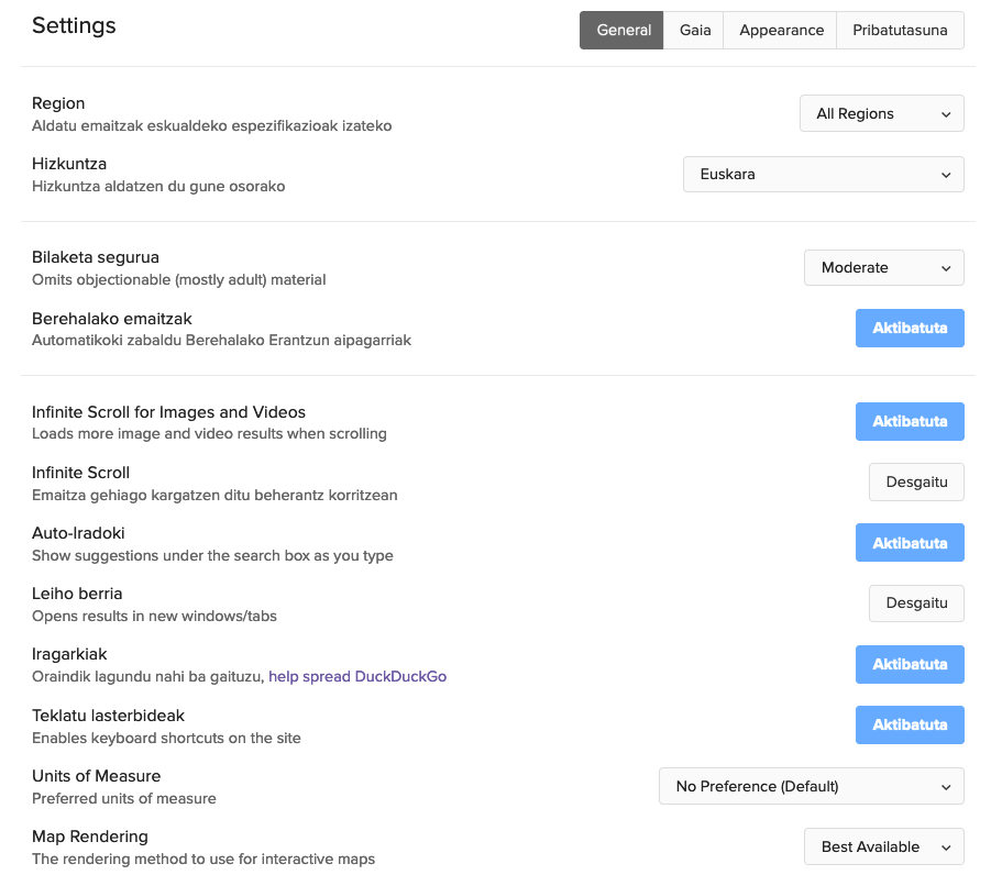 Hasiera batean zaila izan daitekeela pentsa dezakezu. Normala da, nik ere berdina pentsatu nuen. Ez da lehen aldia duckduckgo bilatzailea erabiltzen saiatzen naizela, baina oraingoan badirudi bere erabilpenari ohitu naizela eta ez dudala Googleen beharrik.